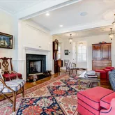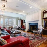 - Living Room: Built-Ins, Fireplace - Gas, French Doors, Floor - Wood Floor, Dec Molding