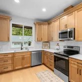 - Kitchen Appliances: Dishwasher, Disposal, Free Standing Range, Microwave, Quartz, Stainless Steel Appliance, Tile