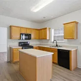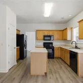 - Kitchen Features: Cabinets Other, Cabinets Stain, Kitchen Island, Laminate Counters, Pantry, View to Family Room