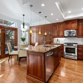 - Kitchen Features: 220 Volt Outlet, Breakfast Bar, Breakfast Nook, Counter - Solid Surface, Stone Counters, Dishwasher, Disposal, Gas Range/Cooktop, Ice Maker Hookup, Kitchen Island, Microwave, Pantry, Range/Oven Built-in, Refrigerator, Self-Cleaning Oven, Updated Kitchen, Wet Bar