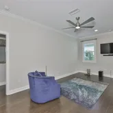 - Interior Features: Ceiling Fan(s), Crown Molding, Eating Space In Kitchen, Kitchen/Family Room Combo, Primary Bedroom Main Floor, Solid Wood Cabinets, Stone Counters, Thermostat, Walk-In Closet(s), Window Treatments