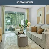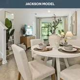 - Public Remarks: The Jackson townhome is a smartly designed floor plan that proves great living can come in an efficient footprint, offering approximately 1,109 square feet of well-organized space with two bedrooms and 2.5 bathrooms. This inviting two-story layout creates a comfortable balance between open living areas and private retreats, making it ideal for first-time buyers, downsizers, or anyone seeking low-maintenance living. The main level features a welcoming kitchen that opens directly into the living room, creating a connected space that works beautifully for both everyday routines and entertaining. The kitchen includes a generous bar that provides extra counter space for meal prep, casual dining, or hosting guests while you cook. Sliding glass doors fill the living area with natural light, brightening the home and enhancing the sense of openness throughout the day.