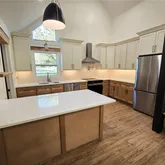 - Interior Features: Beamed Ceilings, Breakfast Bar, Cathedral Ceiling(s), Ceiling Fan(s), High Ceilings, Solid Surface Countertop(s)