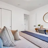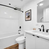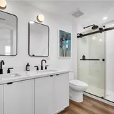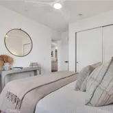 • Primary suite - generous en-suite bathroom, double-sink, matte-black fixtures, ceiling fan