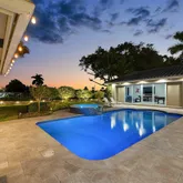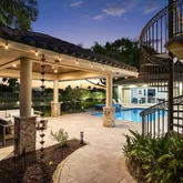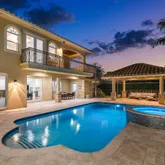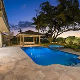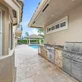 - Exterior Features: Cabana, Covered Balcony, Covered Patio, Custom Lighting, Extra Building, Fence, Open Balcony, Summer Kitchen, Well Sprinkler, Wrap-Around Balcony