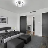 the home’s elevated, contemporary feel. Additional highlights include an LG combo washer/dryer unit, operable windows in both the bedroom and