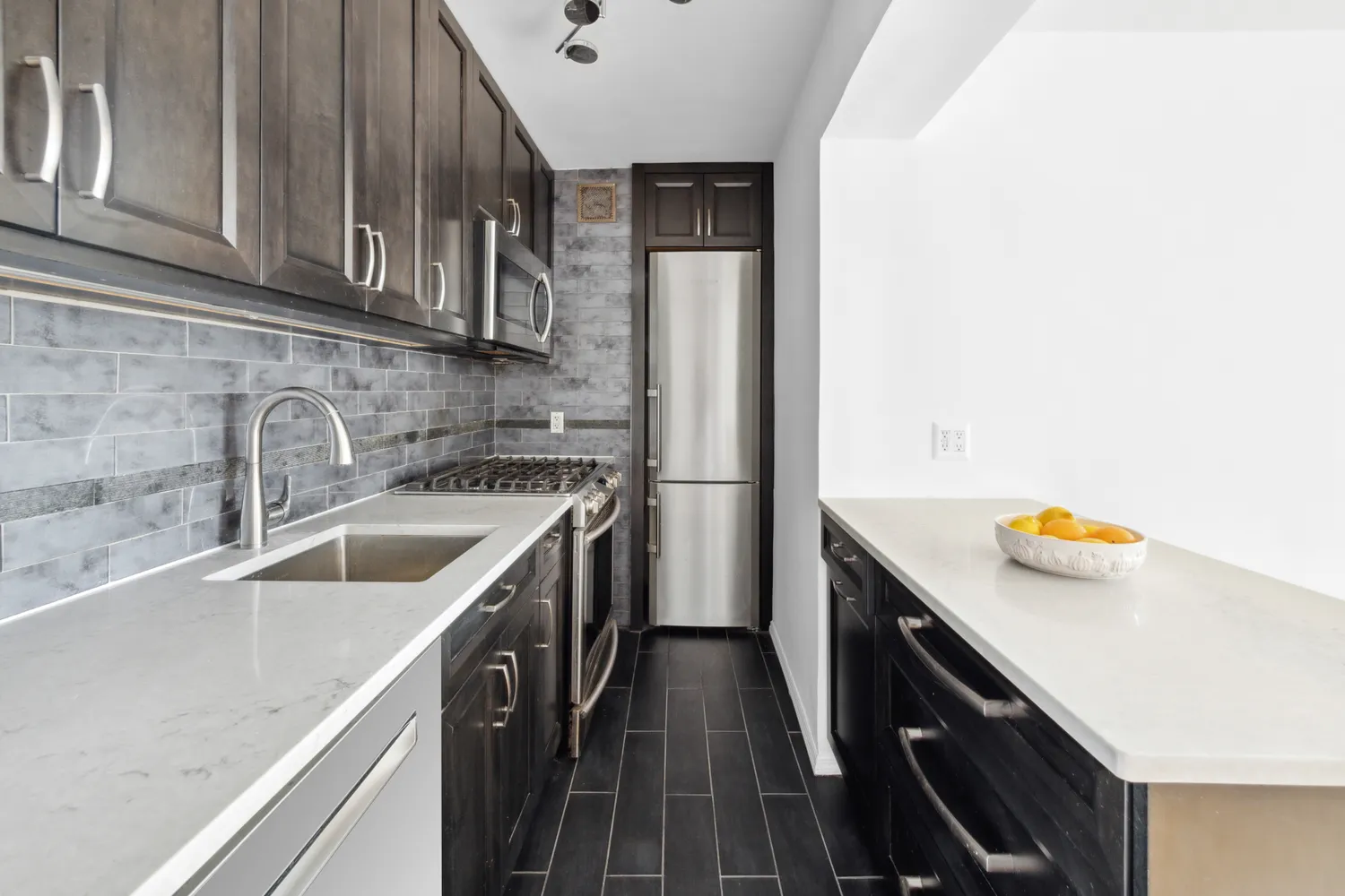 Located in the heart...Welcome home to this spacious Alcove studio on East 28th Street. Enter through the foyer to the renovated open kitchen with custom cabinetry, tiled back splash and quartz countertops. It features a full-sized Samsung stove and microwave, Bosch dishwasher and Liebherr refrigerator.