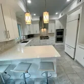 - Kitchen: Bnook/Dining Area, Floor - Porcelain, Newer, French Doors, Eat-In, Center Island