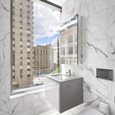 This 1328 square foot two-bedroom, two-bathroom spans the entire West side of the twelfth floor which is shared by only one neighbor, offering a true boutique, luxury living experience. Enjoy expansive Madison Square Park and Iconic New York City views to the North and West from a 26’ living/dining room or while cooking in the chef’s kitchen complete with top of the line Gaggenau appliances, sleek custom cabinetry and Calacatta marble counters and backsplash.