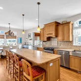 - Kitchen: Center Island, Pantry, Kitchen/Dine, Granite/Stone Counter, Eat-In, Ceramic Tile