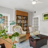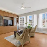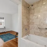 The chef-inspired kitchen brings style and convenience together with sleek quartz countertops, new appliances, and an in-unit washer/dryer. Originally crafted as a three-bedroom with a separate library/den, the layout has been thoughtfully reimagined to elevate comfort and flow. Two bedrooms have been artfully combined into a luxurious primary suite complete with a walk-in closet, tranquil sitting room, and an en-suite marble bath featuring a spa-like soaking tub. The original library/den remains—flexible, welcoming, and easily convertible into a third bedroom when needed.