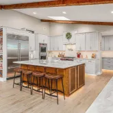 - Interior Features: Beamed Ceilings, Ceiling Fan, Crown Moldings, Kitchen Island, Pantry