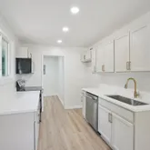 This charming three-bedroom, one-bath ranch-style home offers a comfortable and stylish living space with an open floor plan and tasteful updates throughout. Featuring low-maintenance tile and vinyl flooring, the home boasts smooth ceilings and a fresh, modern feel. The kitchen and dining area are seamlessly combined, showcasing beautiful quartz countertops, a sleek tile backsplash, and stainless steel appliances—perfect for both everyday living and entertaining....Updated Ranch-Style Home with Modern Touches