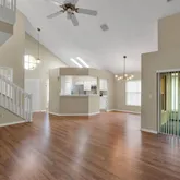 - Interior Features: Ceiling Fan(s), High Ceilings, Open Floorplan, Primary Bedroom Main Floor, Solid Surface Counters, Split Bedroom