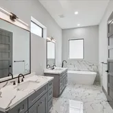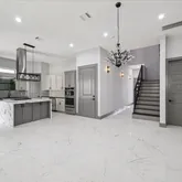 - Interior Features: Balcony, High Ceilings, Kitchen Island, Kitchen Family Room Combo, Quartz Counters, Soaking Tub, Separate Shower