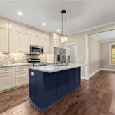 - Kitchen Features: Breakfast Bar, Cabinets White, Kitchen Island, Pantry Walk-In, View to Family Room