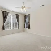 Welcome home to easy, elegant living in one of Fort Mill’s most sought after 55+ communities. This charming ranch offers a bright, open floorplan with a desirable split bedroom layout, perfect for comfort and privacy. A welcoming stone veneer entry and covered front porch set the tone for the quality found throughout. Inside, you’ll find a spacious kitchen featuring Corian countertops, tile backsplash, 42 inch cabinetry, pantry, recessed lighting, tile flooring, gas range, and a sunny bay window breakfast area. Gorgeous hardwood floors flow through the main living spaces, enhancing the home’s warm, inviting feel. The large primary suite includes its own bay window for abundant natural light, plus a private bath with a garden tub and generous walk in closet. A separate laundry room with utility sink adds everyday convenience. The great room and den share a cozy double sided fireplace — a wonderful focal point for relaxing or entertaining. Need extra space? The large walk up attic offers incredible storage or the potential for a home gym, craft room, or office. Enjoy year round serenity in the finished sunroom with vaulted ceilings, overlooking a peaceful, landscaped yard. A spacious paved patio runs the full length of the home, ideal for outdoor dining, gardening, or simply unwinding. Irrigation and lawn maintenance are included for low stress living. All existing modern appliances remain. Community Amenities