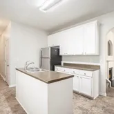 - Kitchen Features: Cabinets Stain, Kitchen Island, Laminate Counters, View to Family Room