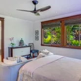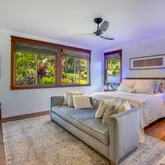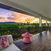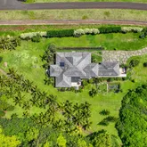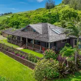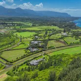 A bridge, gated entry and stepping stone drive deliver you to a 3-car garage with a built-in propane generator. The abundant setting is a showcase of postcard perfection across 5.25-acres and includes Guesthouse rights. It's resplendent with lava rock walls, lush landscaping, fruit trees and a Samoan Coconut grove that fronts the 200-acre Kilauea Point National Wildlife Refuge.