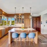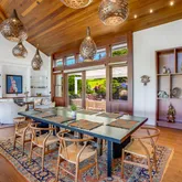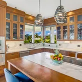 The feature rich property wrought with natural finishes has all of the amenities expected from a residence of this caliber. Wherever you turn, you'll see no detail spared nor overlooked. The 3 bedrooms and 3 baths are thoughtfully arranged across 3,250 sq ft of single-level living area with the primary en suite featuring a spa-like experience and immense walk-in closet. The kitchen is professional grade with Gaggenau stainless appliances. The living area with walls of glass that simply disappear allow you to blur the line between inside and out. This sumptuous space has soaring ceilings, fanciful lighting, fireplace, a slew of custom built-in cabinetry and hardwood floors. The indoor-out expanse connects the entertainment friendly rear lanai with fire pit and wood-fired pizza oven with the covered front lanai that welcomes the ocean fresh tradewinds from the valley below in a sheltered fashion.