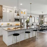 3.5-bathroom home features a private study, charming front porch, and a 3-car garage. The open-concept design centers around a gourmet kitchen with split countertops, a