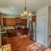 - Kitchen Features: Cabinets Stain, Pantry, Stone Counters, View to Family Room