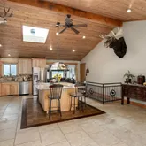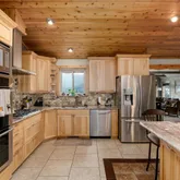 - Room Description: Walk into this beautiful kitchen with gorgeous vaulted cedar wood ceilings, large 6X8 ft island, custom soft close cabinets and drawers