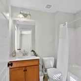 The upper level is home to the sophisticated primary suite, complete with a spacious walk-in closet and spa-inspired shower. Two additional en-suite bedrooms offer both privacy and comfort, with the second bedroom conveniently located across from the laundry room and linen closet.