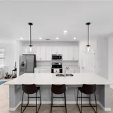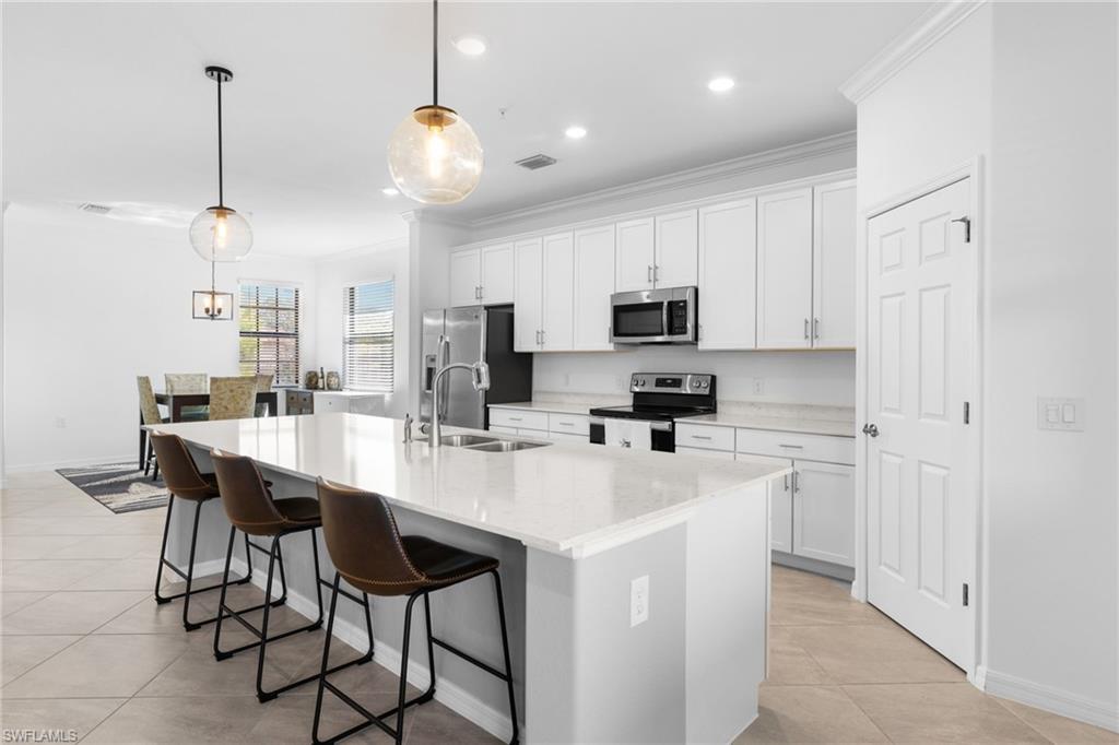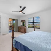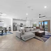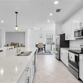 The community offers an array of amenities, including a resort-style pool, bar, wellness...Discover this luxurious and spacious end unit with breathtaking lake views. This meticulously maintained residence features a large quartz kitchen island, stainless steel appliances, and a generous pantry, making it perfect for entertaining. The unit also includes an oversized two-car garage and ample air-conditioned storage space under the stairs. Enjoy peace of mind with impact glass on all doors and windows.