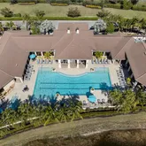 The community offers an array of amenities, including a resort-style pool, bar, wellness area, movie theatre, and courts for pickleball, tennis, and bocce, along with live entertainment.