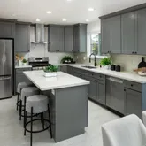 - Kitchen: Cooktop - Gas, Countertop - Quartz, Dishwasher, Exhaust Fan, Garbage Disposal, Island, Refrigerator