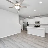 - Interior Features: High Ceilings, Kitchen Island, Kitchen Family Room Combo, Pantry, Quartz Counters, Tub Shower, Window Treatments, Ceiling Fans, Kitchen/Dining Combo, Living/Dining Combo, Programmable Thermostat