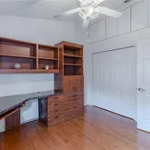 - Interior Features: Built-in Features, Ceiling Fan(s), High Ceilings, Living Room/Dining Room Combo, Open Floorplan, Solid Surface Counters, Solid Wood Cabinets, Split Bedroom, Tray Ceiling(s), Vaulted Ceiling(s), Walk-In Closet(s), Window Treatments