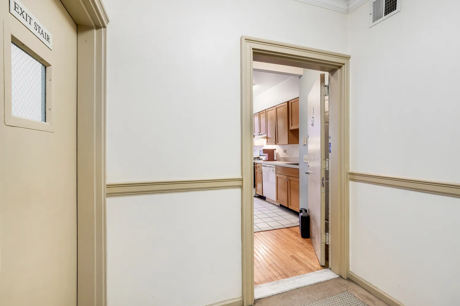 The double exposure, both east and west, provides excellent sun all day long including in the windowed bathrooms and kitchen. The unit features a full-sized washer/dryer, two full bathrooms, hardwood floors throughout, ceilings of over 9', and plenty of closet space. With only one apartment per floor, the elevator opens directly into a hallway only used by this unit.
