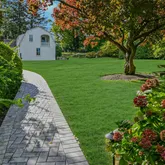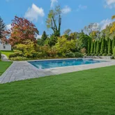 The outdoor amenities are equally impressive, featuring an in-ground saltwater gunite pool, and a three-and-a-half-car detached garage with approved plans for a second-floor two-bedroom cottage renovation and a first-floor pool house.