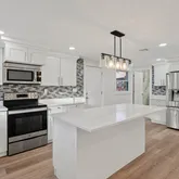 - Kitchen Features: Flooring - Laminate,Kitchen Island,Open Floorplan,Slider,Stainless Steel Appliances