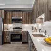 - Kitchen Features: Counter - Solid Surface, Dishwasher, Electric Range/Cooktop, Disposal, Microwave
