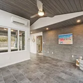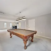 The bright eat-in kitchen features a large bay window, new waterproof LVP flooring, fresh lighting, abundant cabinetry and counter space, high-quality stainless appliances, newly installed quartz countertops, and a convenient pantry. The kitchen opens to the expansive dining and living areas boasting large windows, gleaming hardwoods, recessed lighting, and sliding doors that lead to the unbelievable deck—perfect for hosting! Lower Level (Just Steps From the Foyer!) A spacious great room ideal for entertaining awaits—complete with a charming brick wood-burning fireplace, brand-new Berber carpet, large windows, and a portable custom bar with interior lighting. A pool table conveys, plus there’s a powder room, dedicated laundry room with additional refrigerator, new front-loading washer/dryer, ample storage cabinetry, and direct access to the spectacular sunroom & spa retreat! Upper Level