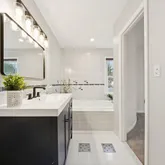The bright eat-in kitchen features a large bay window, new waterproof LVP flooring, fresh lighting, abundant cabinetry and counter space, high-quality...This lovingly and impeccably maintained 4-level split home was fully remodeled in 2001 and thoughtfully updated again in 2025! It offers incredible space for both everyday living and entertaining — with four spacious levels to enjoy! The sunroom addition, expansive TREX deck, and outdoor oasis w/exceptional exterior lighting will absolutely WOW you! Main Level