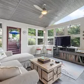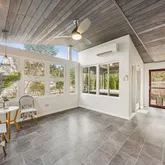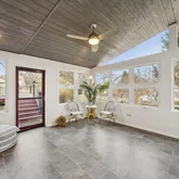 This four-season showstopper offers cathedral ceilings, walls of windows, an impressive stacked-stone accent wall, and a protected salt-water spa with privacy blinds — plus access to the deck and yard. You may never want to leave! Basement
