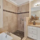 - Bathroom: Full on Ground Floor, Granite, Oversized Tub, Primary - Tub with Jets, Split Bath, Stall Shower, Tile, Tub in Primary Bedroom, Tub with Jets, Updated Bath