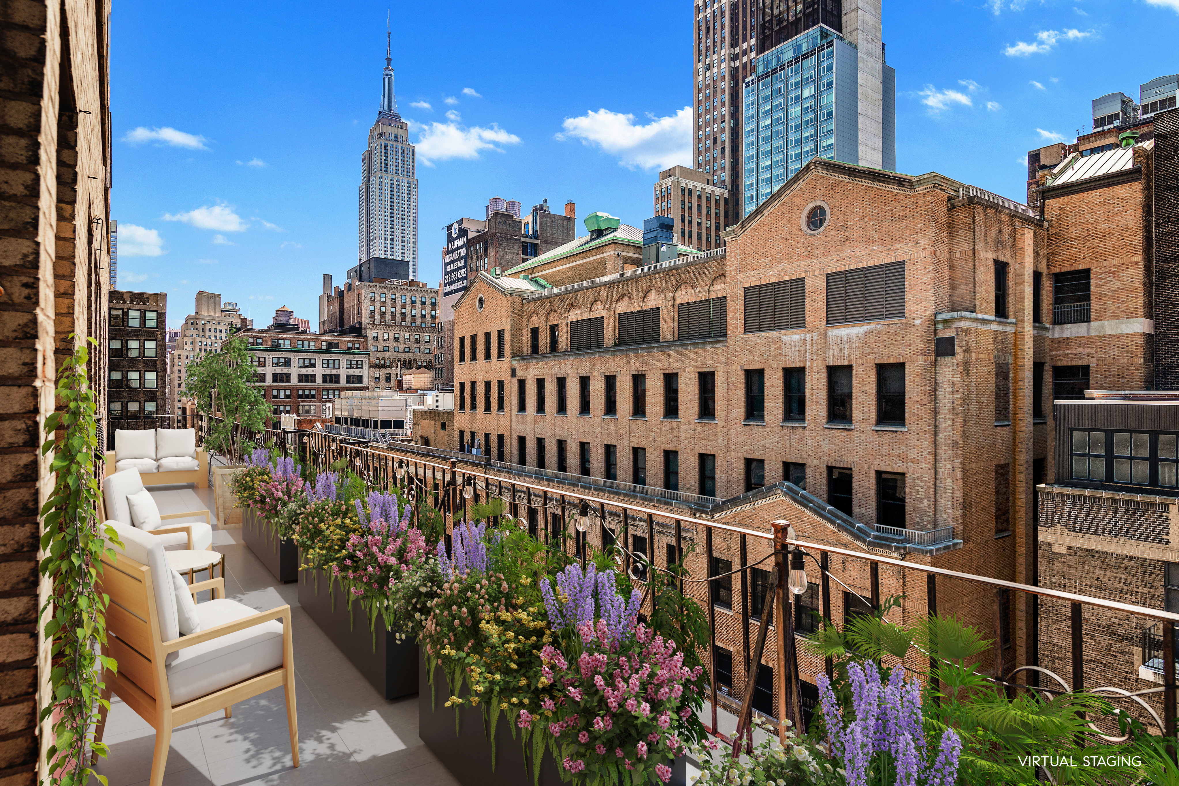 All day sun, 12 oversized factory windows. EMPIRE STATE Building to the east and vista views to the west.