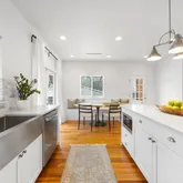 Expansive walls of glass frame the main living spaces, filling the interiors with abundant natural light and blurring...Quintessential charm defines this Tarrytown home, where thoughtful design and an exceptional use of space come together to create an inviting open floor plan ideal for both everyday living and entertaining. At the heart of the home, the chef’s kitchen features a 36” Bertazzoni gas range, Carrara marble countertops, a dedicated dining or breakfast area, and a spacious walk-in pantry.