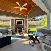 - Fireplace Features: Outdoor Fireplace, Gas Log, Living Room, Stone