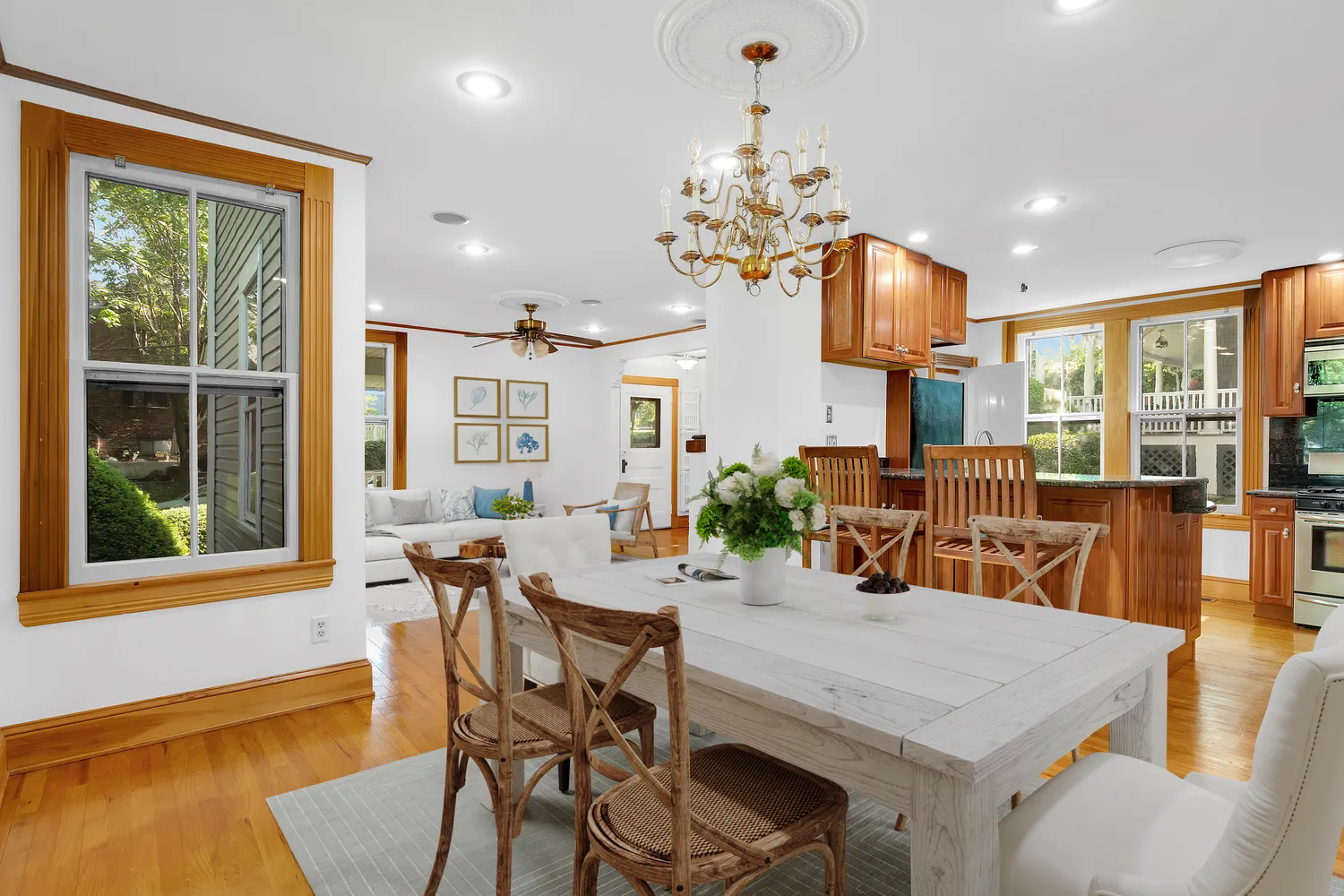 Walk into an expansive living room with a cozy working fireplace. The kitchen, equipped with stainless steel appliances,...*Welcome to this meticulously maintained property. The home underwent a full renovation including all new plumbing, electrical, mechanicals, central A/C, and a 50 year roof. Located in the highly sought-after neighborhood of Douglaston, this elegant residence offers a perfect blend of classic charm and modern amenities, making it an ideal home for comfortable living and entertaining.*