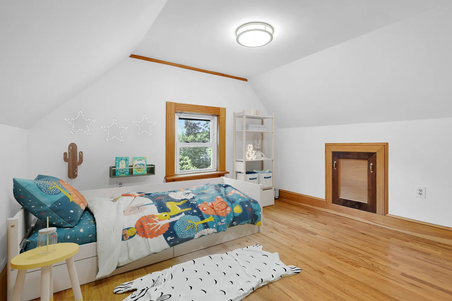This home features four spacious bedrooms filled with natural light, ample closet space, and two full bathrooms. The second floor houses a primary suite with a bonus windowed changing nook and walk-in closet, while the secondary bedroom has a generously sized windowed walk-in-closet. They share a well-appointed full bathroom. The attic provides two additional bedrooms ideal for a guest room, home office, or a playroom.