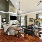 - Interior Features: Breakfast Bar, Crown Molding, Double Vanity, Entrance Foyer, Granite Counters, High Ceilings, His and Hers Closets, Kitchen Island, Primary Downstairs, Sound System