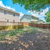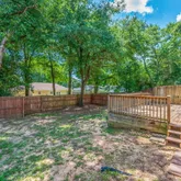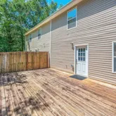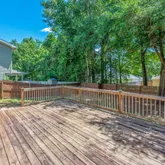 " Large private backyard with wood deck