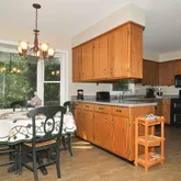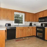 - Kitchen Cabinets/Counters: Solid Surface Counter, Wood Cabinets