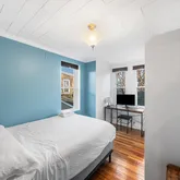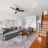 The thoughtfully renovated kitchen offers white shaker cabinets, a mix of butcher...Welcome to 2425 Sepviva Street, a charming 3 bedroom, 1.5 bathroom home nestled on a quiet block in the heart of Fishtown. Step through the classic vestibule into a bright, open first floor featuring hardwood floors, a large bay window, and a graceful original staircase that anchors the space. A convenient half bathroom and an updated kitchen complete this level, creating a layout that is both functional and inviting.